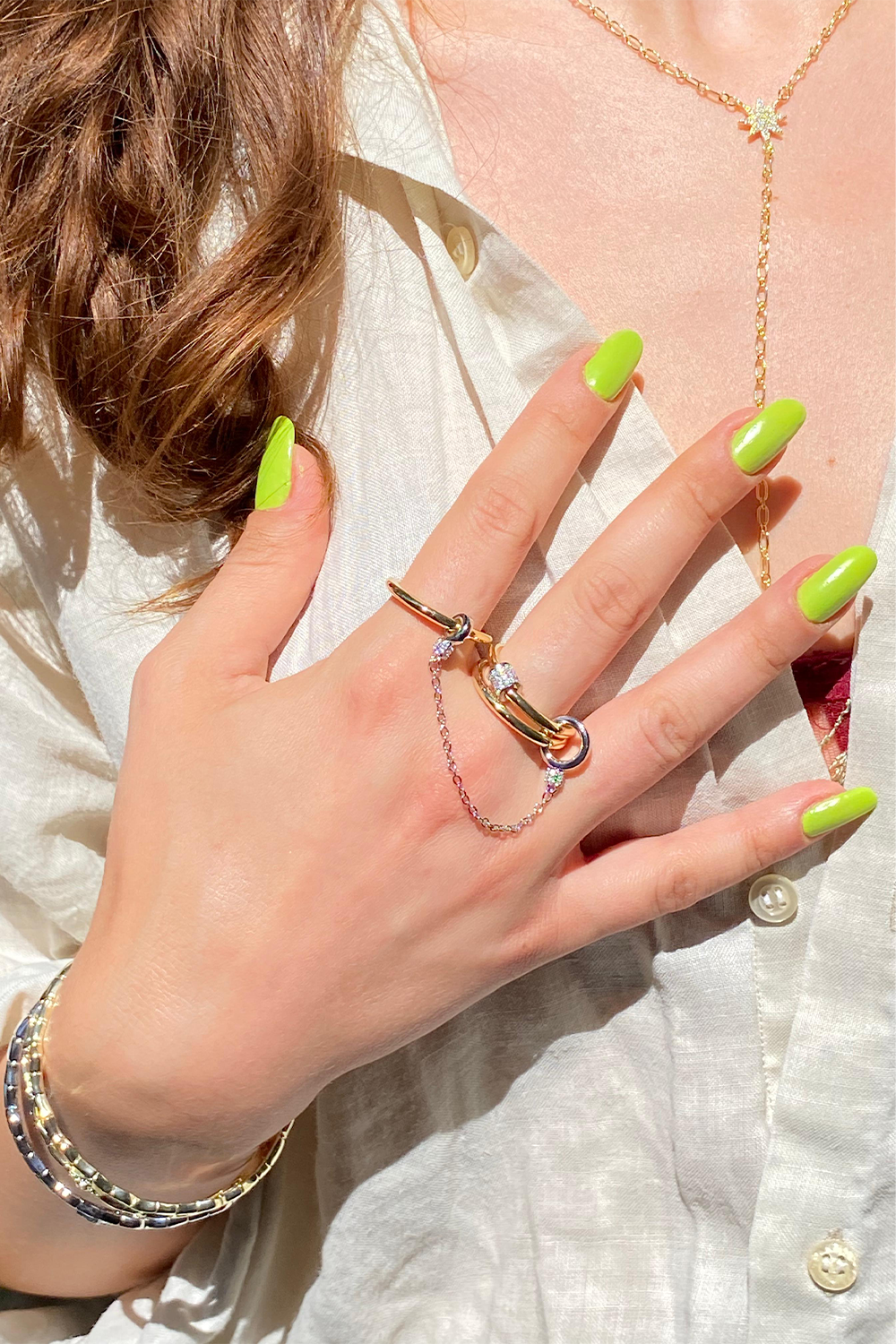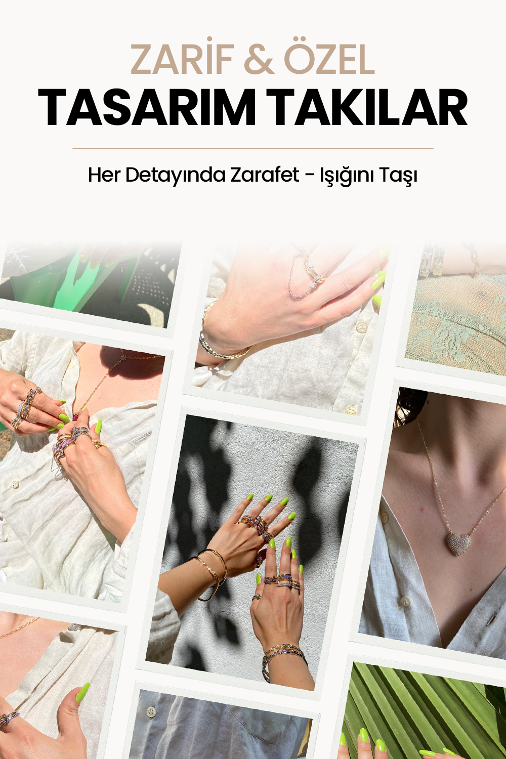 Zincir Bağlantılı 3’lü Taş Detaylı Altın Renk Yüzük