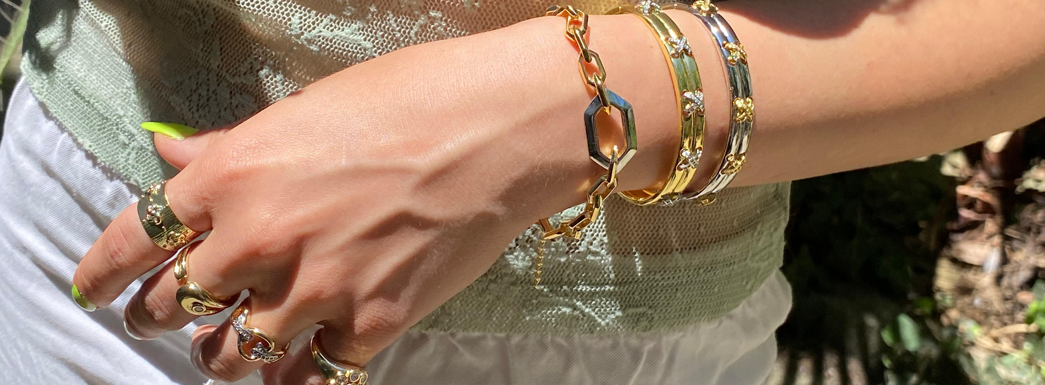 Taş Ara Detaylı Oval Altın Renk Bileklik