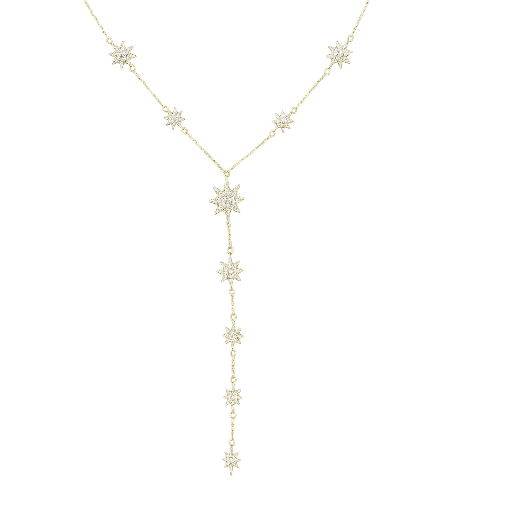 Altın Kaplama Yıldızlı Zincir Y Kolye – Zirkon Taşlı Tasarım