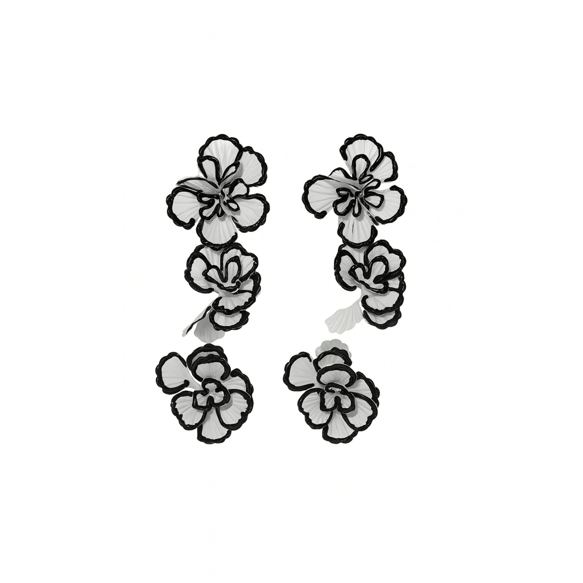 Siyah Beyaz Çiçek Formlu Üçlü Küpe