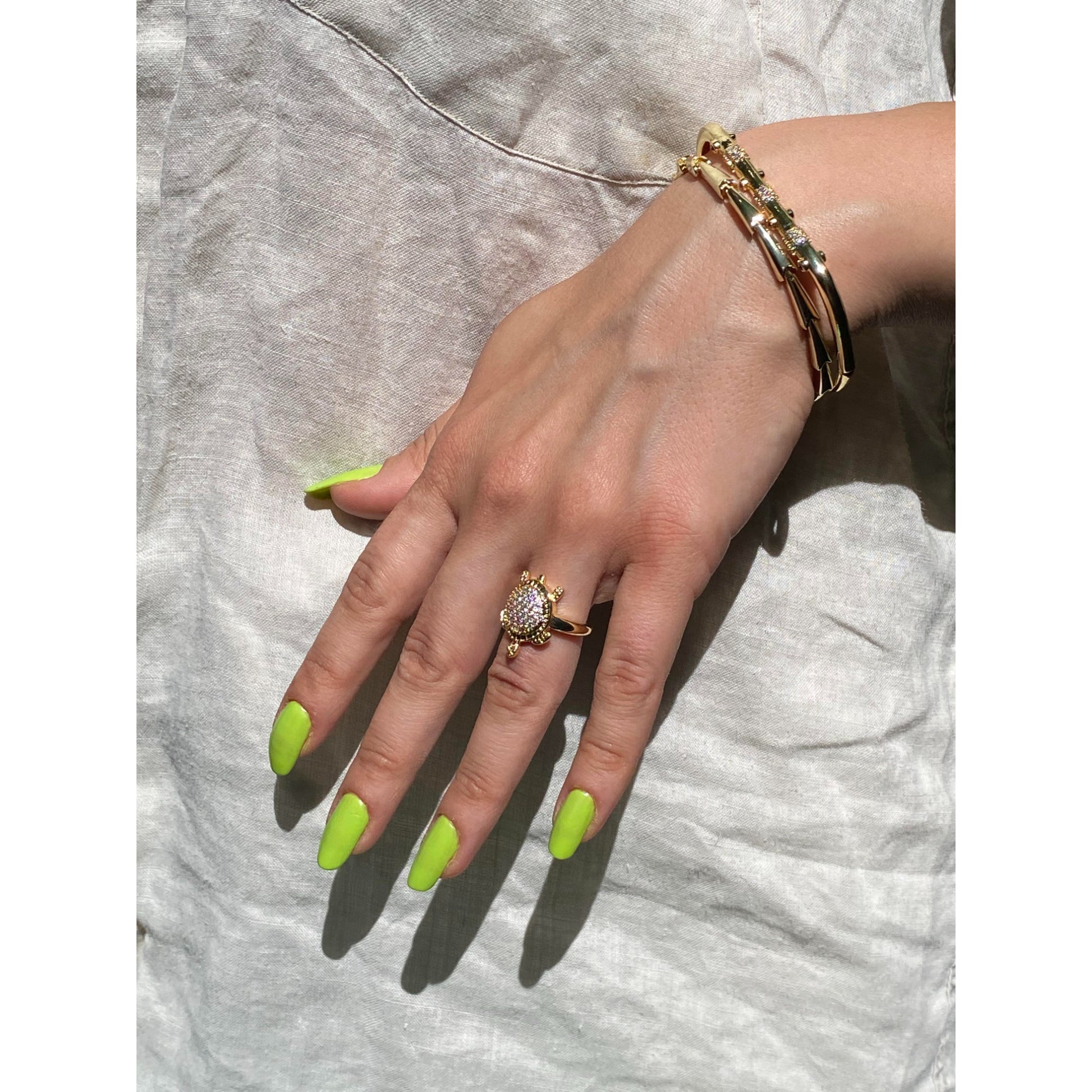 Taş İşlemeli Kaplumbağa Figürlü Yüzük
