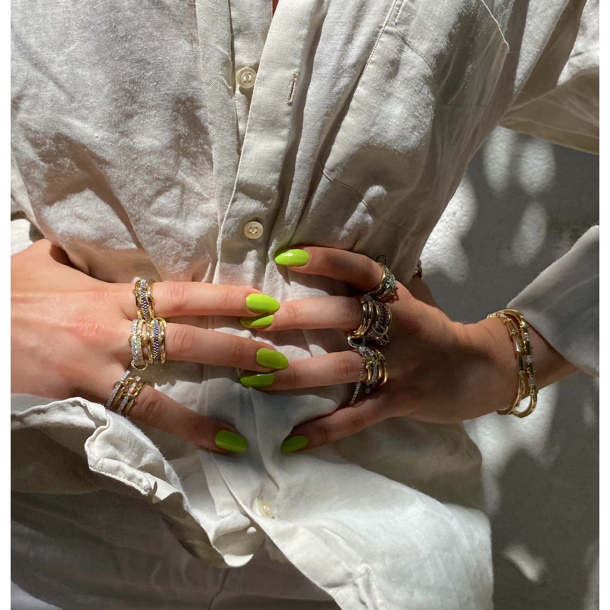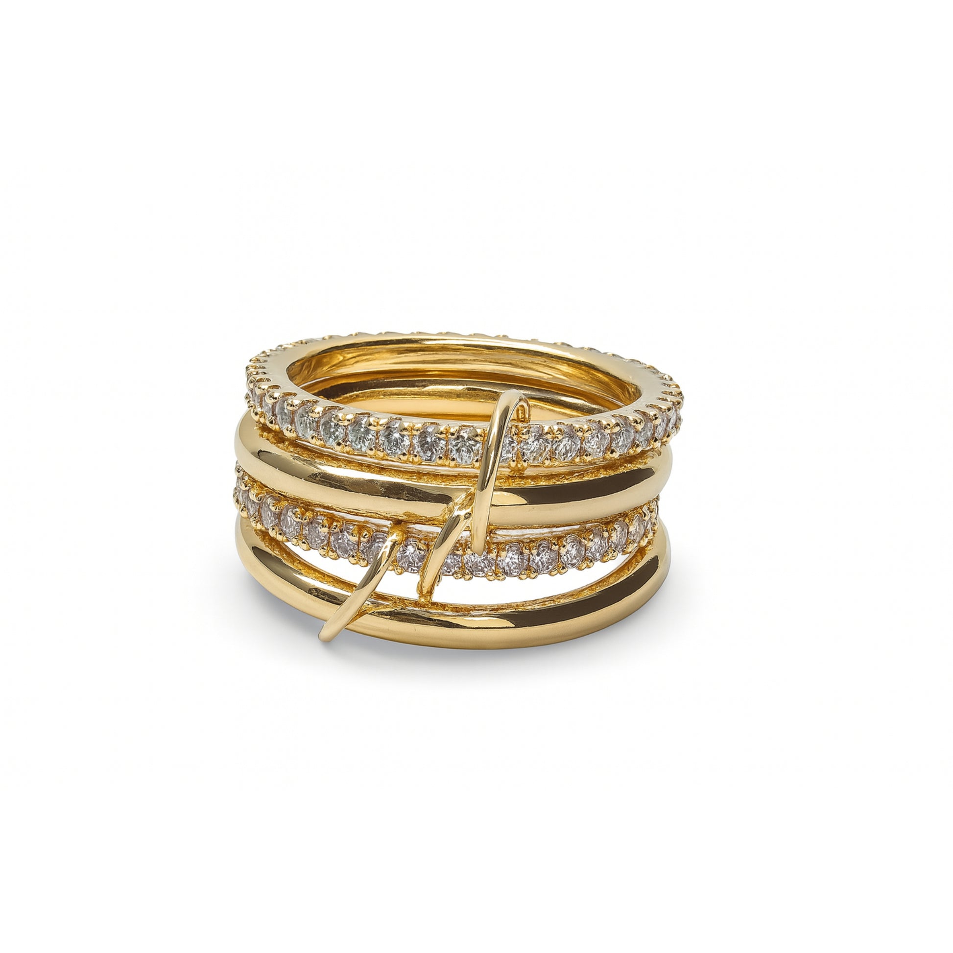 Taş Sıralı Katmanlı Altın Renk Yüzük
