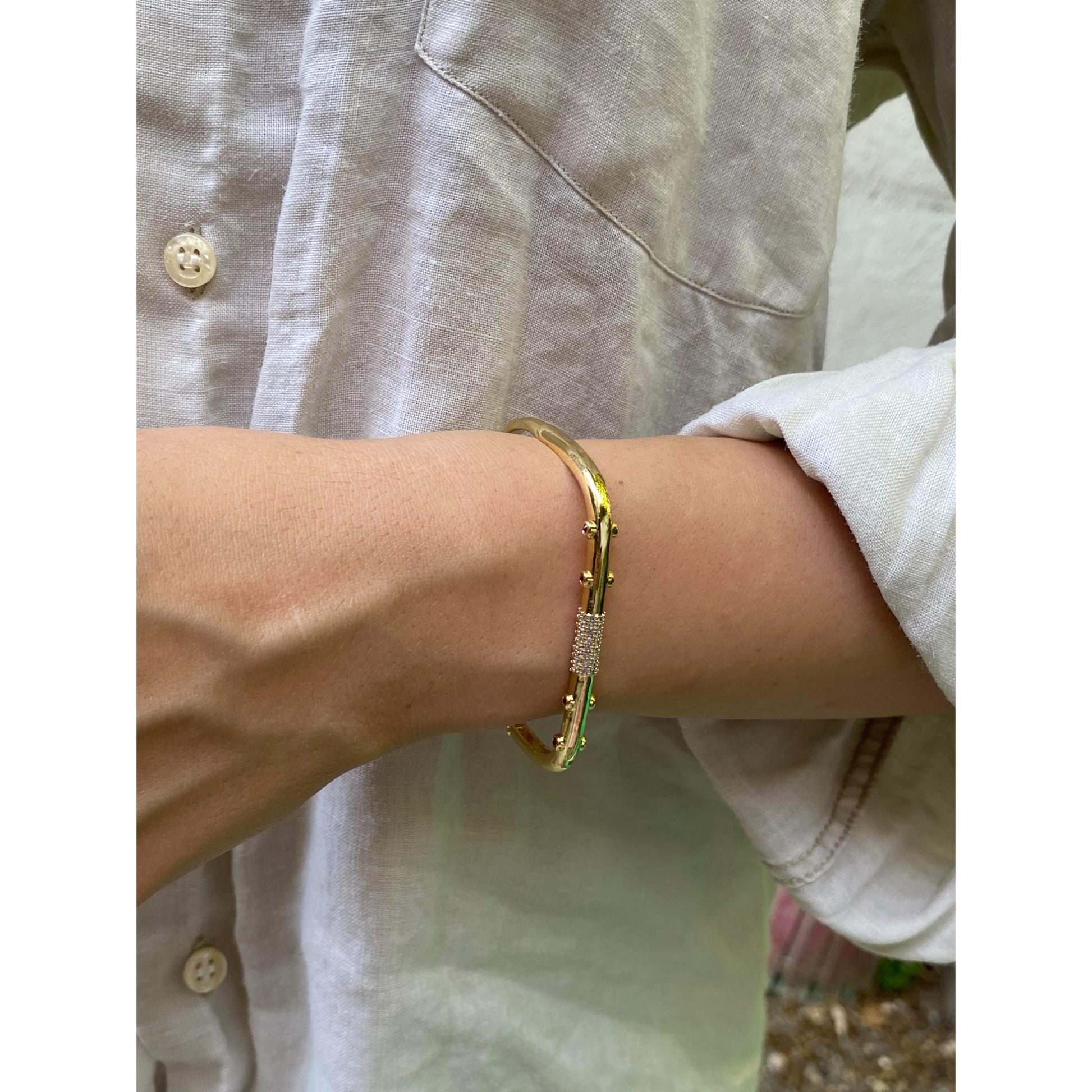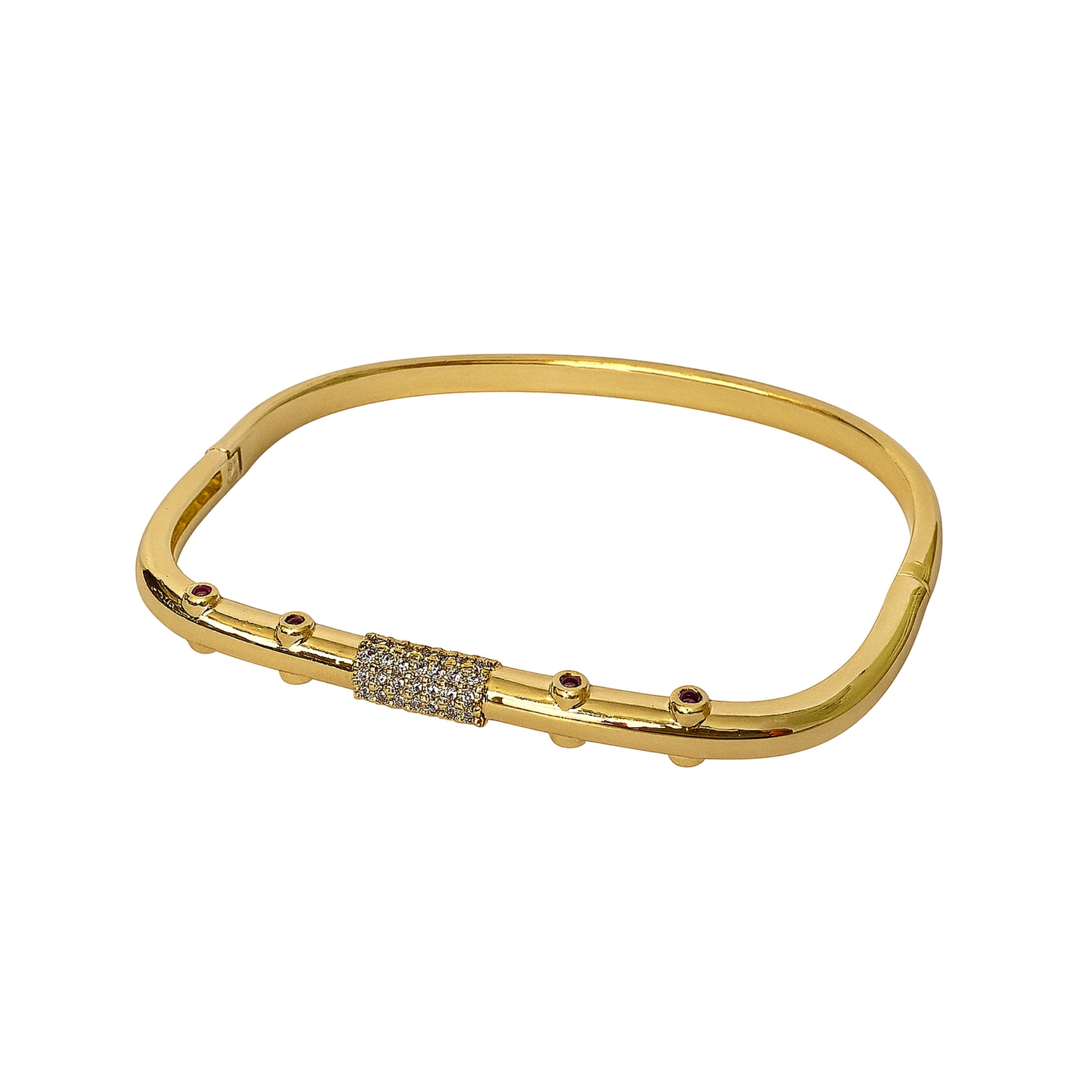 Zirkon Taşlı Vidalı Altın Renk Çelik Bileklik