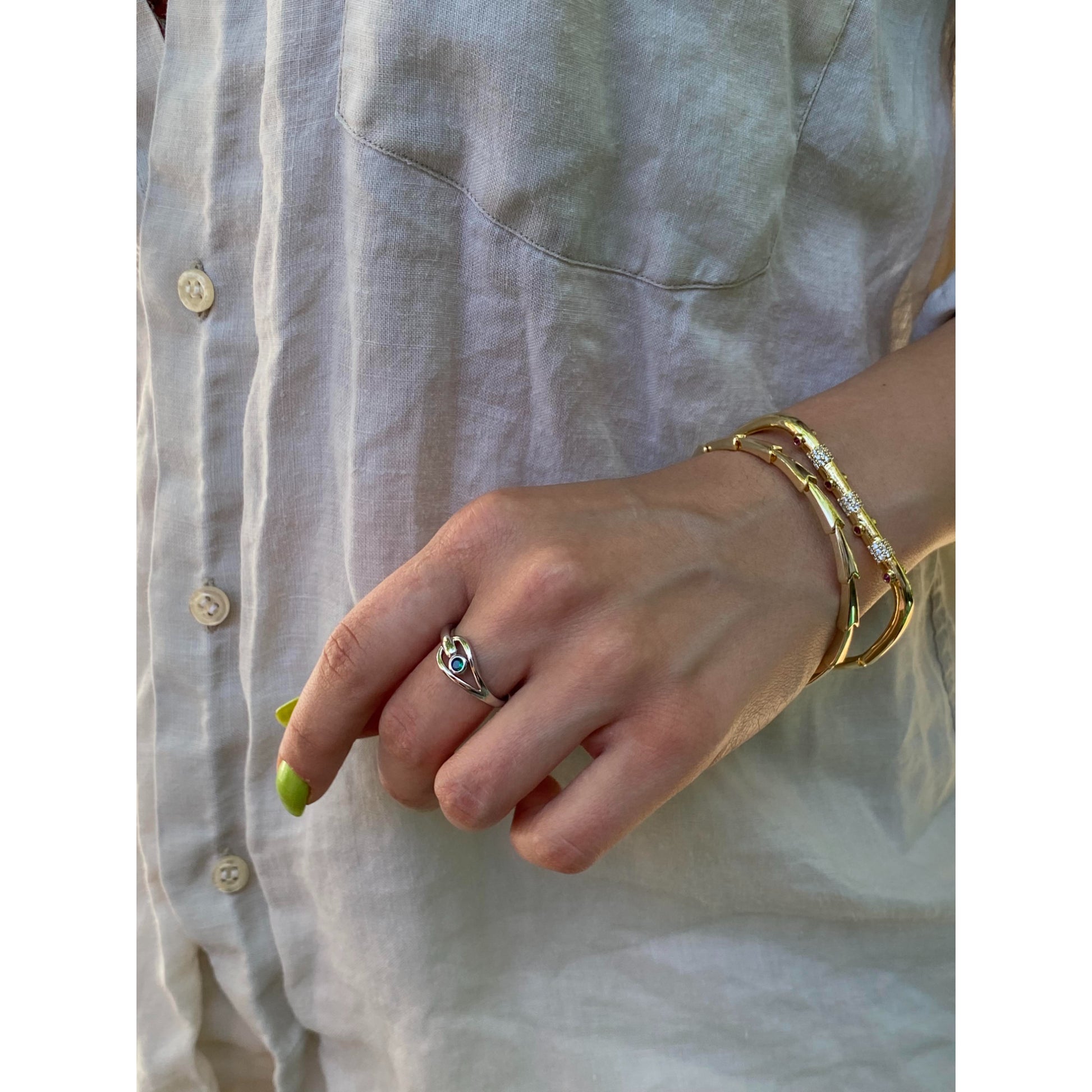 Zümrüt Taş Detaylı Gümüş Renk Minimal Yüzük